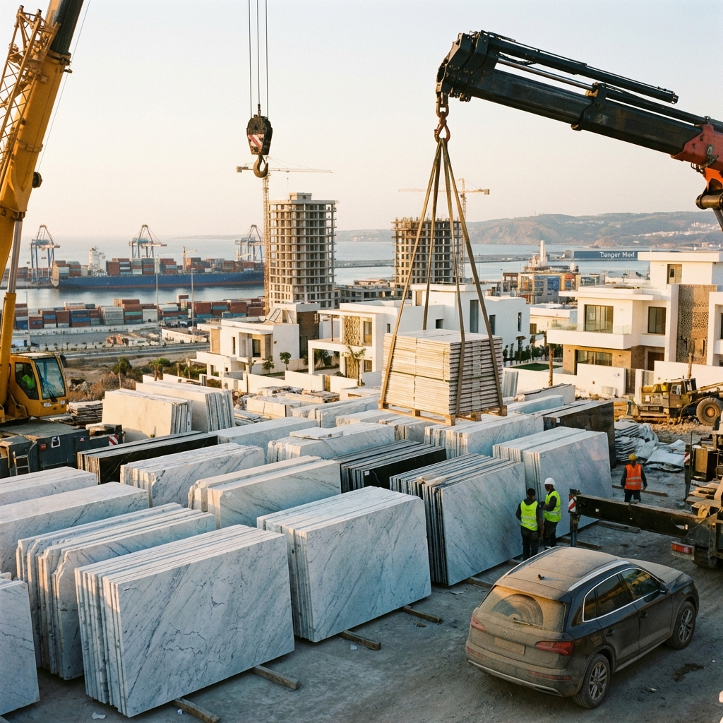 Le secteur du bâtiment et des travaux publics (BTP) au Maroc connaît une effervescence sans précédent en 2026, portée par les chantiers de la Coupe du Monde 2030 et le programme d'aide directe au logement. Pour les promoteurs immobiliers et les entrepreneurs, l'importation de matériaux de second œuvre — carrelage, marbre et appareils sanitaires — est un levier stratégique pour se démarquer par la qualité.